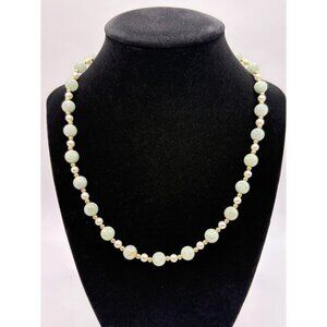 Elegant green jade and cultured pearl necklace featuring lustrous 14KT beads and clasp. This timeless piece enhances both formal and casual attire.