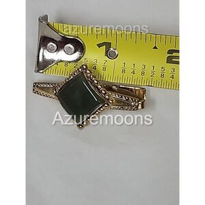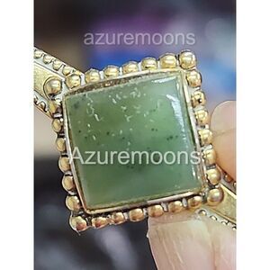 Elevate your attire with the Vintage Green Jasper Tie Clasp, a timeless accessory that adds a dash of retro sophistication to any ensemble. Fashioned from metal with an asymmetrical design, this tie clip features an exquisite green jasper stone, setting a unique tone that complements a range of outfits for various occasions. Crafted in the United States during the Retro era (1935-1950), this original piece is a testament to classic styling and enduring quality. It's ideal for those who appreciate the elegance of yesteryear, making it a superb choice for birthdays, anniversaries, or simply to enhance your daily wear with a touch of vintage flair. SKU-R1 bx -0-2