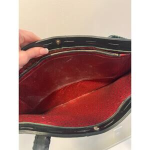 Vintage Green Leather Briefcase Handbag Weaved Leather JL