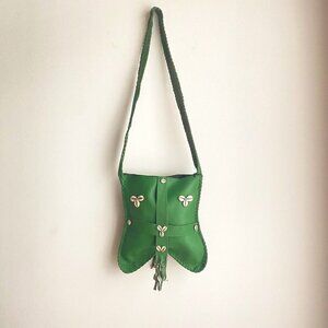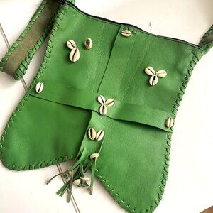 Vintage Green Leather Shell Accent Square Shoulder Messanger Bag.