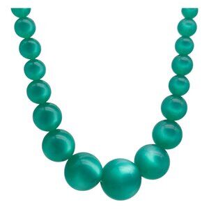 Vintage Green Lucite Moonglow Women's Necklace 15" Graduated Bead Bow Clasp Y4