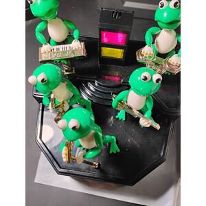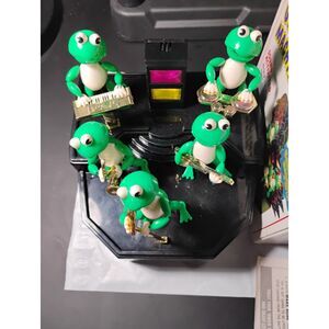 This is for a Vintage Green Machine The Frog Band In Box Not Working Good For Parts. The lights work, but the figures themselves do not move. The motor tries to work when the music is on, but the figures don't move. Selling for parts and also as is.
