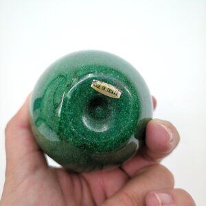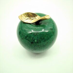Beautifully crafted green marble apple paperweight with a shiny brass leaf detail — a striking and functional accent for your home office or bookshelf. Heavy and smooth to the touch with a polished stone finish. Made in Taiwan, this piece adds a touch of vintage charm and sophistication to any space.