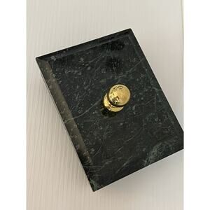 Vintage Green Marble Stone Footed Jewelry Trinket Vanity Box Lidded Brass