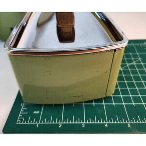 This is a stylish mid-century vintage set of metal canisters featuring a green finish with sleek chrome lids and wood-accented handles. The set is designed to store tea, coffee, and sugar, & flour (some of the labels are missing) with embossed labels for easy identification. Each canister has a retro aesthetic that blends functionality with charm, making it a practical and decorative addition to any kitchen. The chrome accents offer durability and a polished contrast to the muted green exterior, while the wood-accented lids enhance the vintage feel. These pre-owned canisters show minor signs of wear, such as scuffs and small scratches, which add to their retro appeal. They are perfect for collectors, enthusiasts of mid-century designs, or anyone seeking unique and attractive storage solutions.