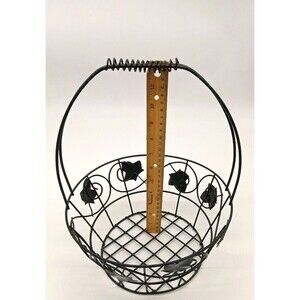 Vintage Green Metal Wire Ivy Leaf Pattern Basket