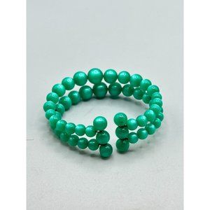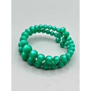 Vintage Green Moonglow Lucite Bracelet Beaded Double Cuff Early Plastic Bracelet