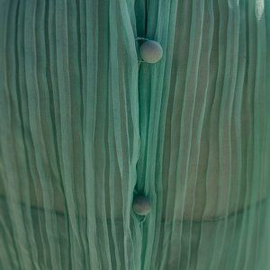 * This 1970's Pistachio/Mint Green Dress is double layered, fully lined with a slip-cut under piece with frothy chiffon overlay in delicate pleated top and bell sleeves