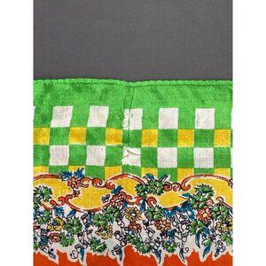 Vintage Green & Orange Checkerboard Dog Print Silk Scarf 22-Inch Square With Flo