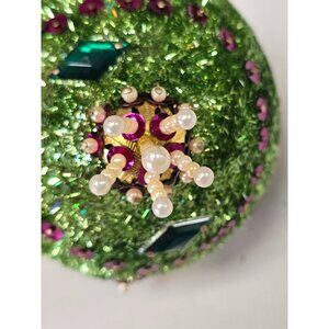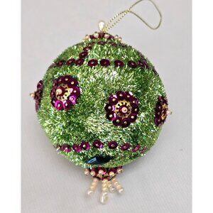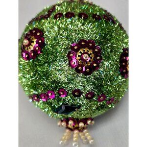 Vintage Green PUSHPIN ORNAMENT Purple Sequin Bead Ornate Christmas Tree Ball