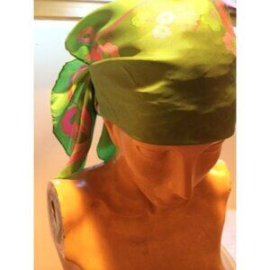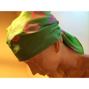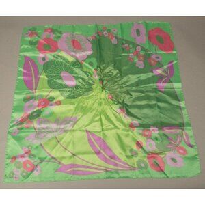 Vintage Green Pink Floral Silk Square Scarf Midcentury Design