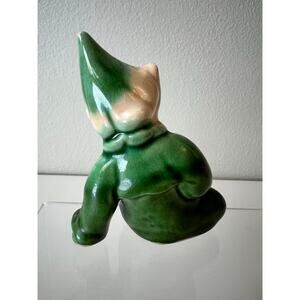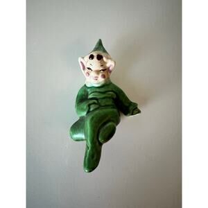 Vintage Green Pixie Elf Shelf Sitter Ceramic Figurine Knee Hugger 1960s