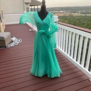 Gorgeous vintage old Hollywood drape chiffon prom gown zipper back closure fully lined (minor wear please see all pictures) otherwise great preloved condition smoke or free