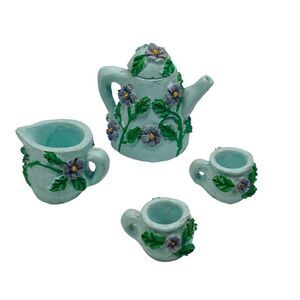 Vintage Green & Purple Floral Miniature Tea Set