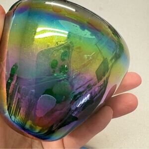Vintage Green Purple Iridescent Vase Small Home Decor 90s Damaged