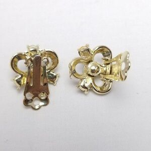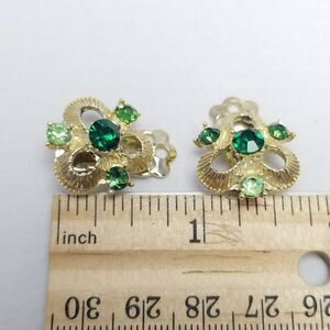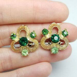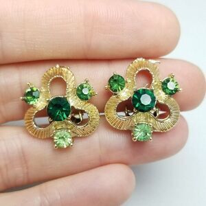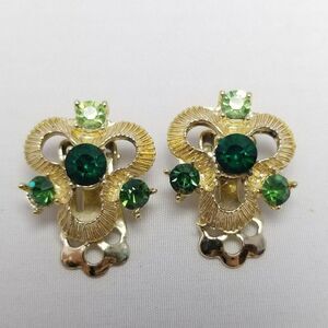 Vintage Green Rhinestone Clip On Earrings, Gold Tone Setting, Estate