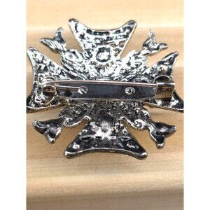 Vintage Green Rhinestone Cross Brooch Pin Statement