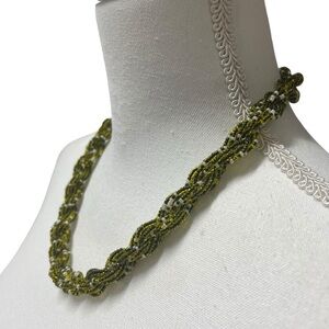 Vintage Green Seed Bead Twisted Multi Strand Necklace With Barrel Screw Clasp. Great pre-owned condition, beautiful necklace for the spring. 20” from end to end, please refer to pics, last one shows measurement.