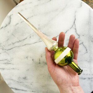 Vintage Green Silver 9" Glass Christmas Tree Topper Striped Feather Tree Small