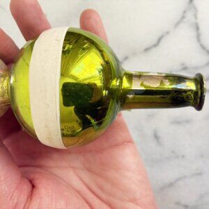 Neat vintage Christmas tree topper! Smaller size - 9" tall, best for smaller to medium trees. Beautiful green color on silver with a white stripe. I'm guessing this is from the 1960s.