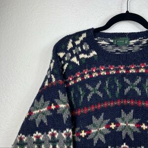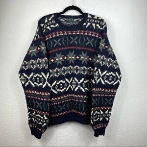 Vintage Green Tag J.Crew 100% Wool Snowflake Pattern Knit Sweater