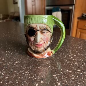 Vintage Green Toby Mug Pirate With Eye Patch Rare Glazed Hand Painted