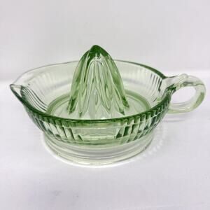 Vintage Green Uranium Glass Juicer Reamer Ribbed UV Glow Depression 1930s Spout