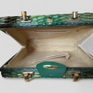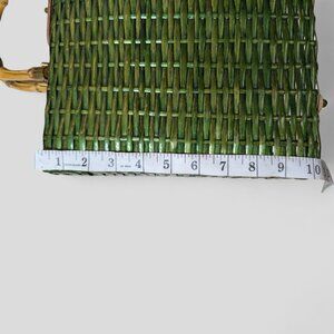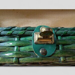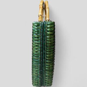 Vintage Green Wicker Rattan Satchel Briefcase Purse Bamboo Handle 14"X10" MCM