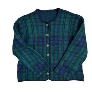 Vintage Green Wool Tartan Cardigan | Size L