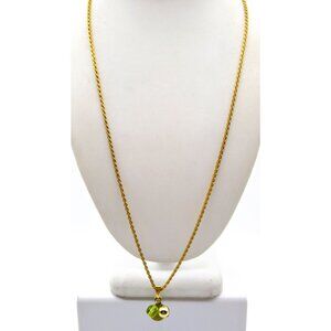Vintage Green and Gold Charms Necklace, Long Gold Tone Rope Chain with Plastic a