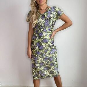 Vintage Green and Purple Floral Sheath Dress