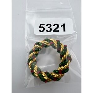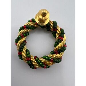 Vintage Green and Red Beads Gold Tone Christmas Wreath Pin