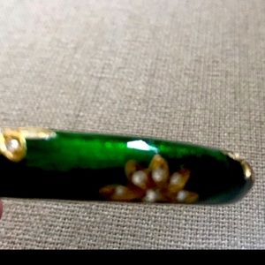 Vintage Green bangle hinged bracelet gold with rhinestones