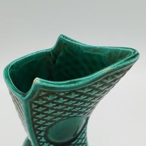 Vintage Green made in Japan heeled boot mini vase. Unique, rare, very dramatic elegant curves. Scuffing on one of the top point. Please see all pictures for details and wear. Approximately 4"