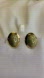 These are super Cute Sage Green Faux Stone type clip-on earrings. Gold tone. No markings . Vintage normal Slight Imperfections do to age. Please review photos.