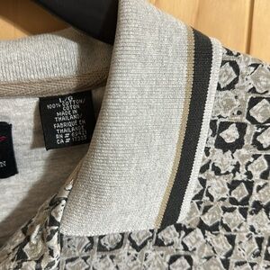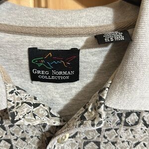 Vintage Experience the perfect blend of style and comfort with this Greg Norman Collection polo shirt. Featuring a sophisticated dark hue and an all-over geometric pattern, this shirt is ideal for both casual and semi-formal occasions. Crafted from a high-quality 100% cotton blend, it ensures a comfortable fit and a polished look.