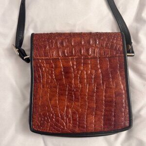 Vintage Greg Roche Berkeley Bag Real Crocodile Leather in Cinnamon Brown with Black Trim with Gold Tone Hardware - Size Medium. Good pre-owned condition. Some lite wear on edges and to hardware of overall good, no rips or major creases.