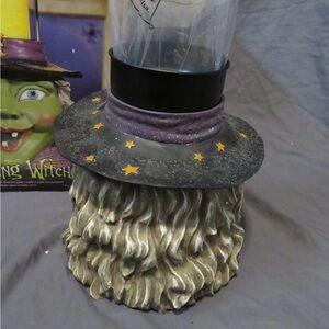 Vintage Vibrant green witch candle holder with a yellow hat.