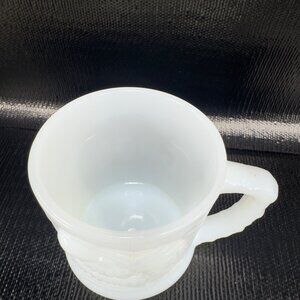 Vintage Grog Johnny Hart BC Comic White Milk Glass Coffee Mug Cup 3D Raised VTG