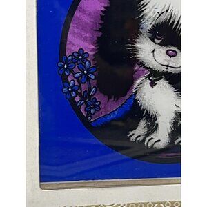 Vintage Groovy Puppy Dog Blue Purple Carnival Prize 1980s Glass Mirror 6”