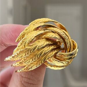 Vintage Grossé (Christian Dior) 1964 Feather Leaf Hollow Cluster Gold Brooch Pin