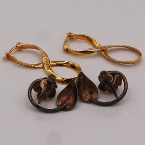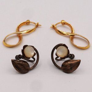 Vintage Group of Gold Plated Silver Infinity & Moonstone W\ Leaf Silver Earrings