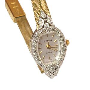 Vintage Gruen GR4748 Gold Ladies Quartz Diamond Wrist Watch Women's Jewelry