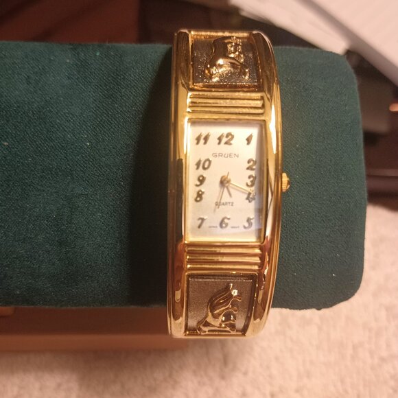 Vintage Gruen Panther Two Tone Hinged Bangle Watch.