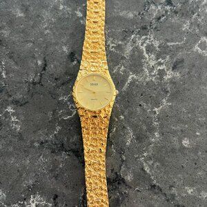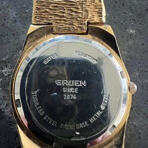 Vintage Gruen Women's Quartz Watch with Gold Nugget Band