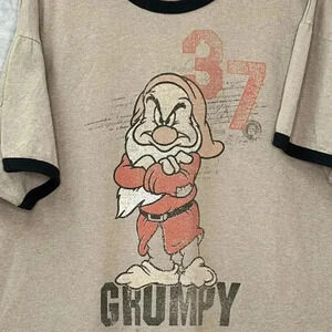 Vintage Grumpy Seven Dwarfs Disney Men's Ringer T-shirt SZ XXL Tan