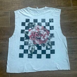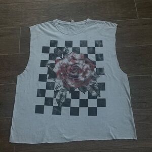 Vintage Grunge Rose Checkered Graphic Cropped Boxy Fit Custom Sleeveless T-Shirt
