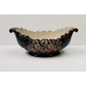 Vintage Guadalajara Boat Bowl, Lofisa Console, Lacy Floral Pattern, Black Green