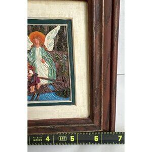 Vintage Guardian Angel 3-D Relief Art Children on Bridge 7"X7" GrannyCore Faith