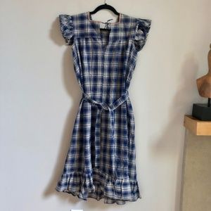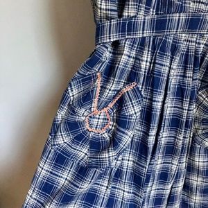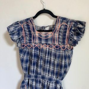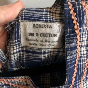 Vintage Guatemalan Handmade Navy Blue Ruffle Plaid Embroidered Cottagecore Dress